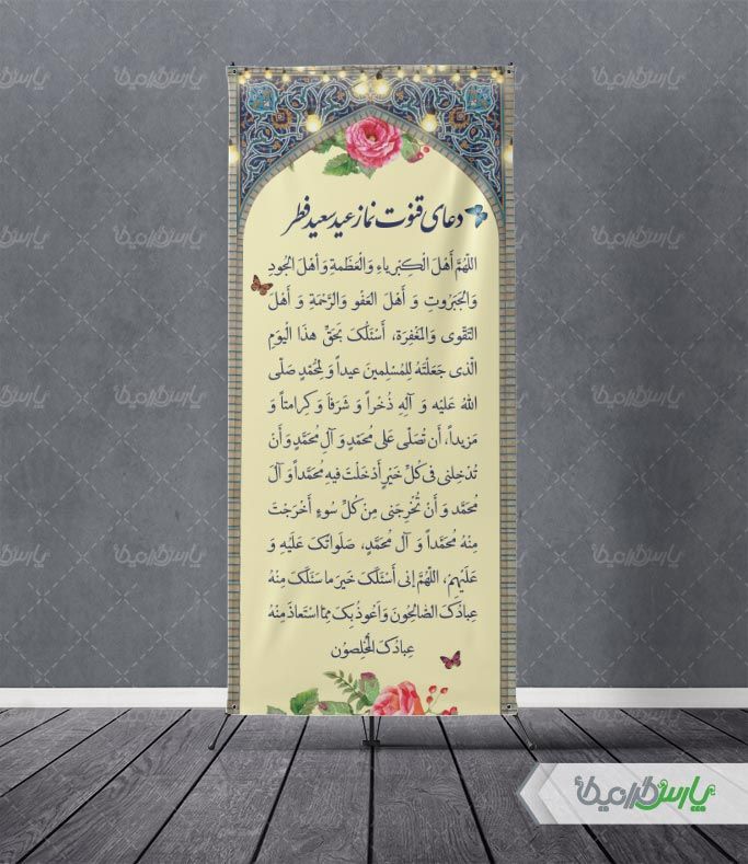 طرح بنر عید فطر شامل:تصویر گل و متن دعای قنوت نماز عید فطر می باشد که توسط تیم پارس گرافیک طراحی شده است. به دلیل استفاده از عناصر و المان های با کیفیت در طرح بنر مناسبتی ، می توانید علاوه بر چاپ بنر (به صورت افقی)، در استوری اینستاگرام و یا دیگر پلت فرم های فضای مجازی استفاده نمایید. ضمنا به دلیل لایه باز بود طرح بنر عید فطر می توانید با استفاده از نرم افزار فتوشاپ تغییرات دلخواه خود را اعمال کنید.