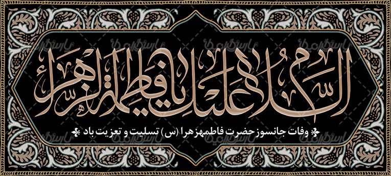 - طراحی بنر با استفاده از متن السلام علیک یا فاطمه الزهرا در طرح بنر سالگرد شهادت حضرت فاطمه زهرا