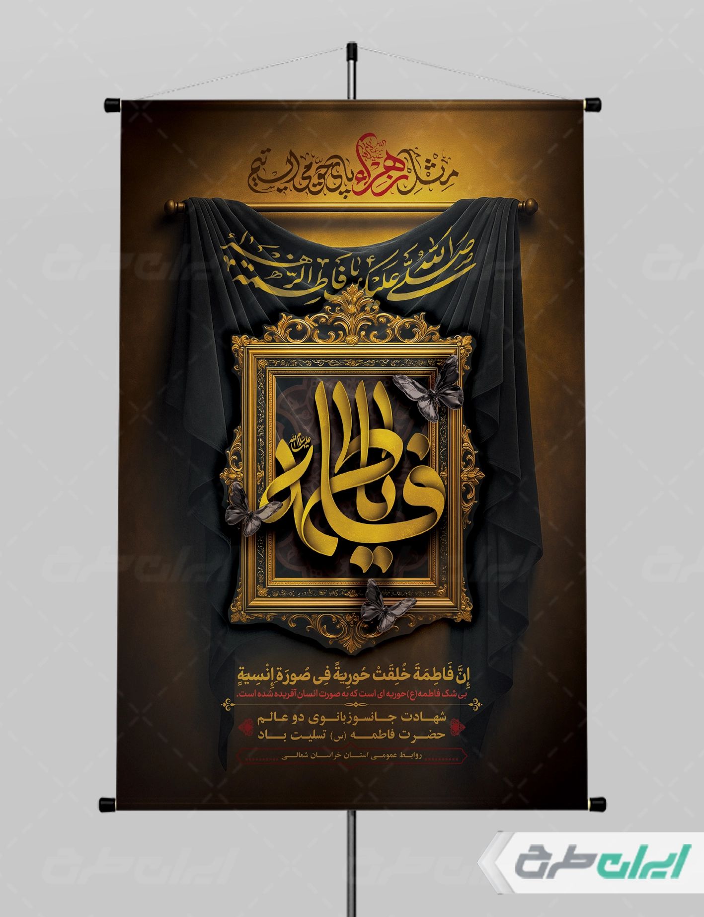 طرح بنر سالگرد شهادت حضرت فاطمه زهرا شامل: