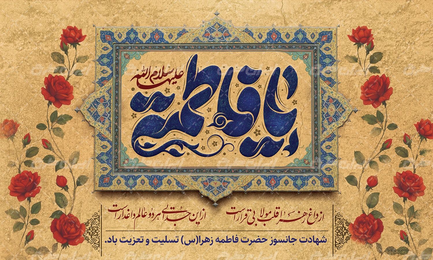 تذهیب و متن تسلیت سالروز شهادت حضرت فاطمه می باشد که توسط تیم ایران طرح طراحی شده است.
