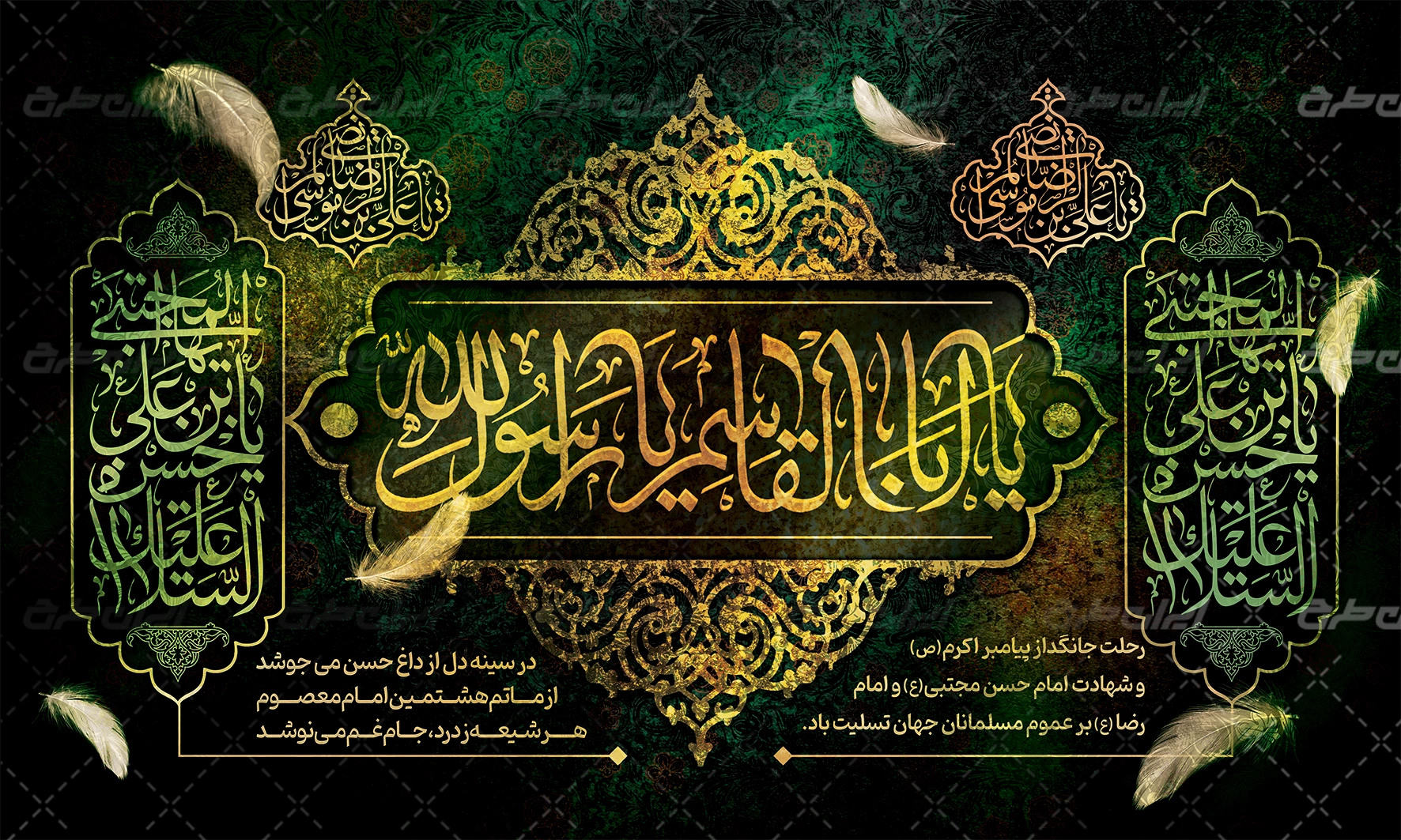 ضمنا به دلیل لایه باز بود طرح بنر تبریک رحلت پیامبر اکرم می توانید با استفاده از نرم افزار فتوشاپ طرح را ویرایش نمایید.