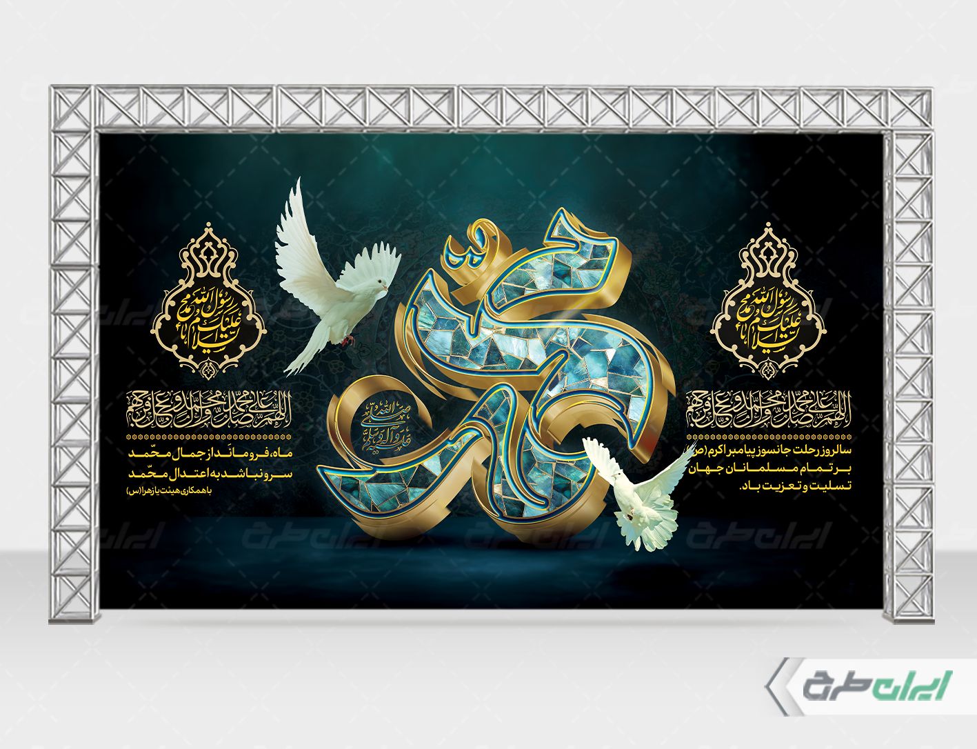تایپوگرافی محمد، تذهیب و متن تسلیت رحلت پیامبر و شهادت امام حسن و امام رضا (ع) می باشد که توسط تیم ایران طرح طراحی شده است.