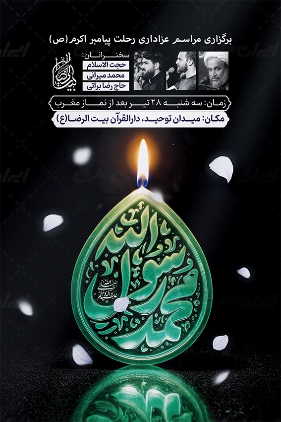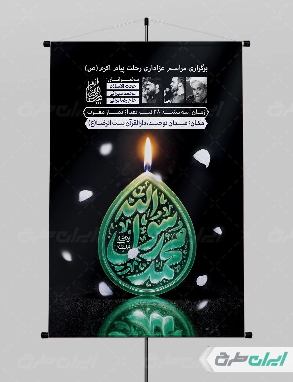 طرح بنر رحلت پیامبر اکرم، توسط تیم با تجربه ایران طرح جهت استفاده کاربران سایت طراحی و به صورت لایه باز در دسترس کاربران قرار گرفته است.