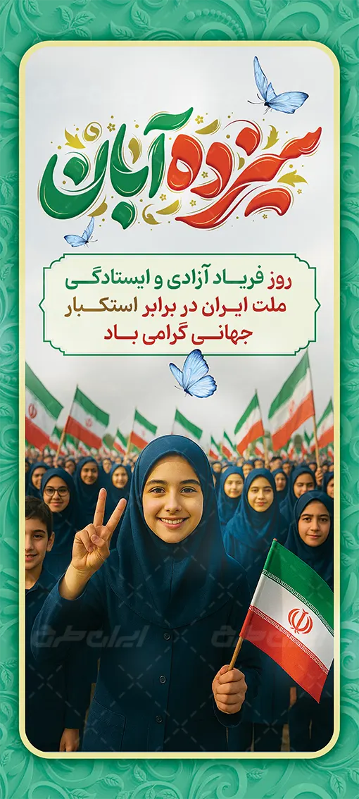 طرح بنر 13 آبان، توسط تیم با تجربه ایران طرح جهت استفاده کاربران سایت طراحی و به صورت لایه باز در دسترس کاربران قرار گرفته است.