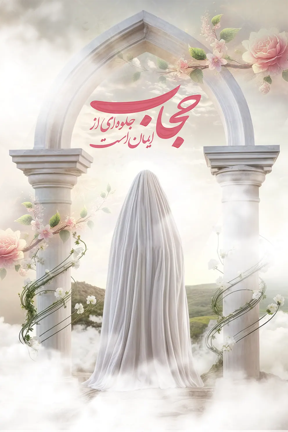 - هم نشینی مناسب رنگ سفید با طرح بنر روز حجاب و عفاف