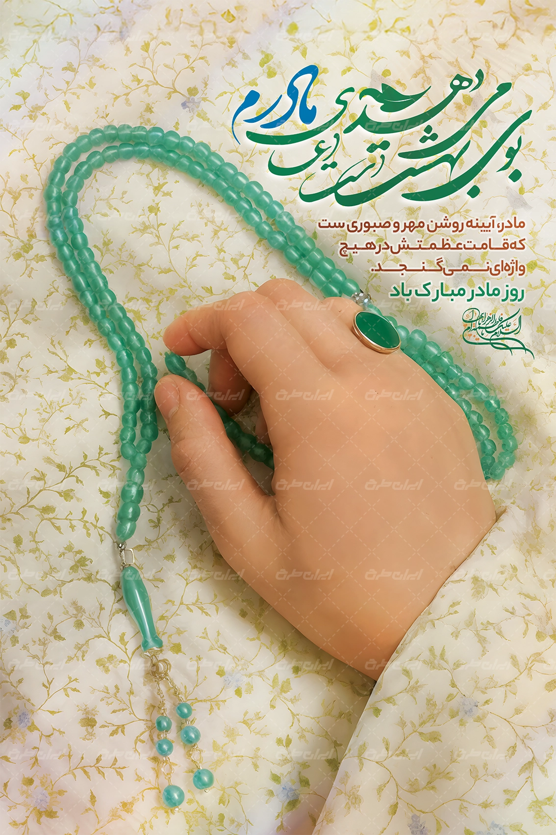 تصویر مادر و متن تبریک روز مادر و روز زن می باشد که توسط تیم ایران طرح طراحی شده است.