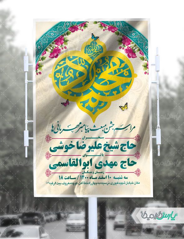 طرح بنر عید مبعث شامل: گل ، پروانه و متن گرامیداشت عید مبعث می باشد که توسط تیم پارس گرافیک طراحی شده است. به دلیل استفاده از عناصر و المان های با کیفیت در طرح بنر مناسبتی ، می توانید علاوه بر چاپ بنر (به صورت افقی)، در استوری اینستاگرام و یا دیگر پلت فرم های فضای مجازی استفاده نمایید. ضمنا به دلیل لایه باز بود طرح بنر عید مبعث را می توانید با استفاده از نرم افزار فتوشاپ تغییرات دلخواه خود را اعمال کنید.