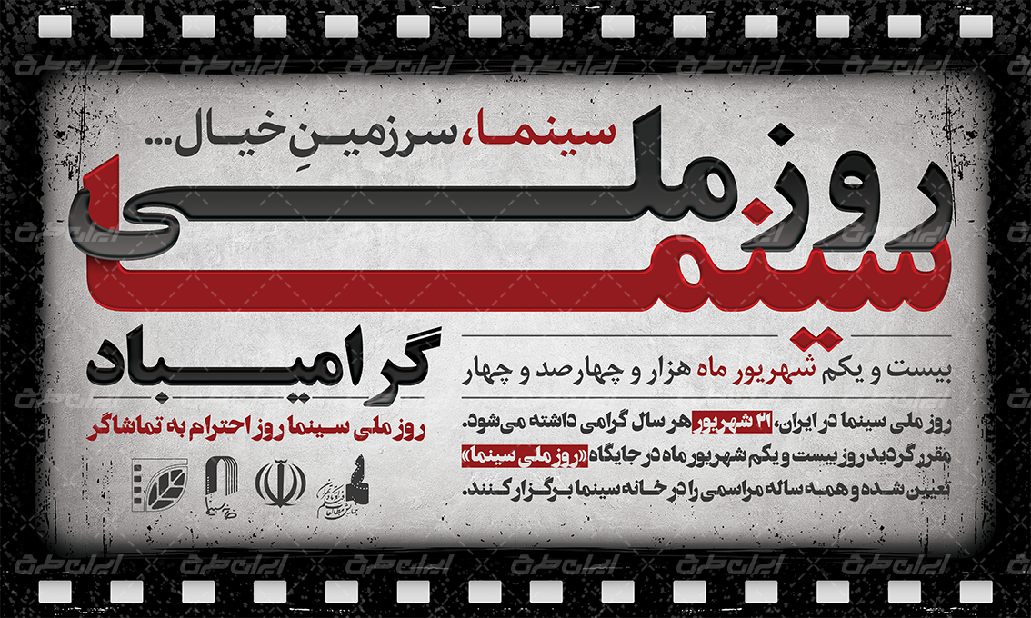 بنر لایه باز روز ملی سینما، توسط تیم با تجربه ایران طرح جهت استفاده کاربران سایت طراحی و به صورت لایه باز در دسترس کاربران قرار گرفته است.
