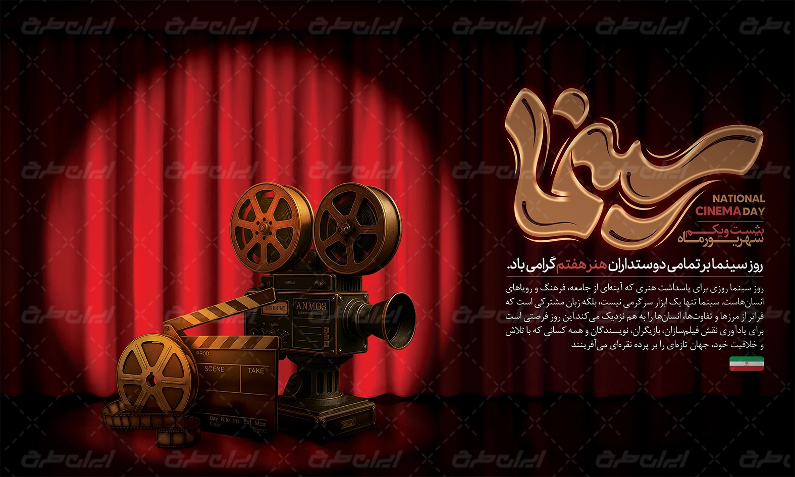 تصاویر مرتبط با بنر، متن تبریک روز ملی سینما می باشد که توسط تیم ایران طرح طراحی شده است.