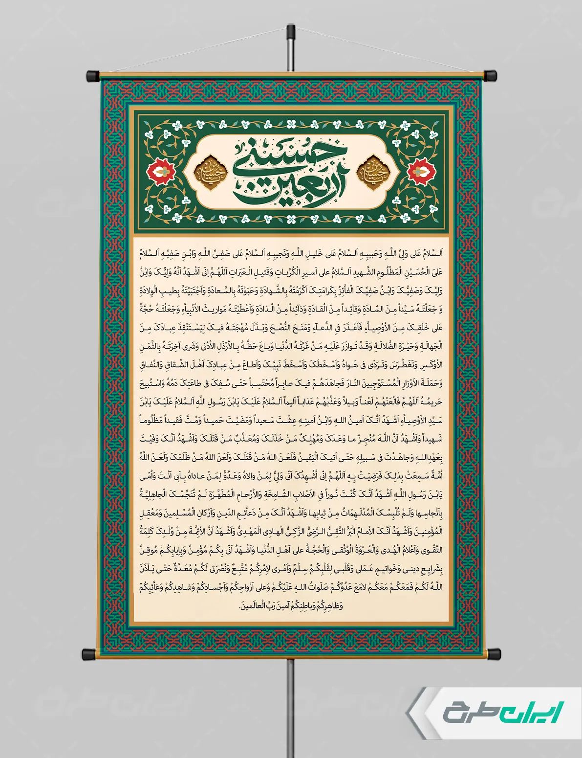 تذهیب و متن دعای اربعین میباشد که توسط طراحان ایران طرح در نرم افزار فتوشاپ طراحی شده است.
