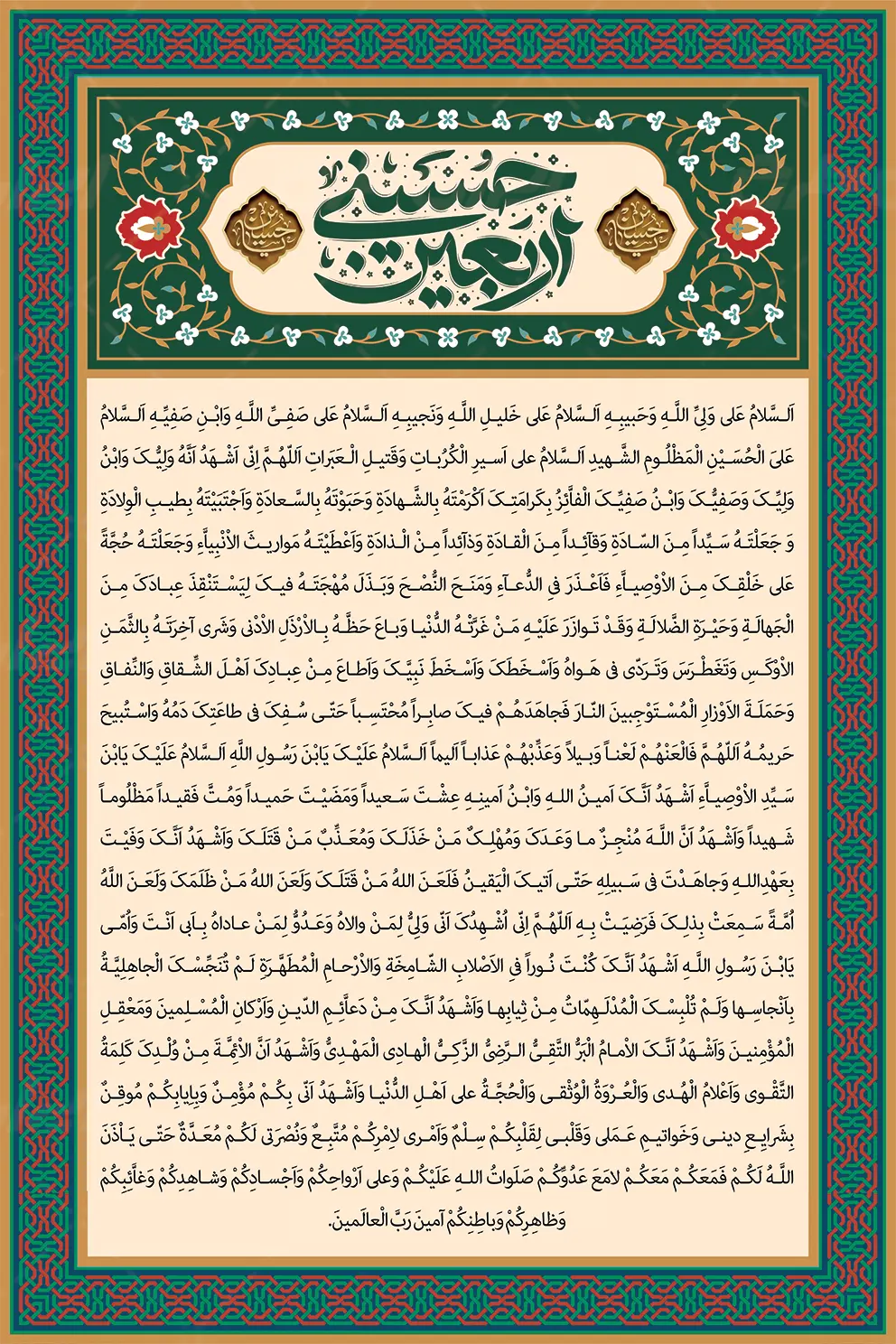 - طراحی شیک تایپوگرافی مرتبط و متن دعای اربعین می باشد.
