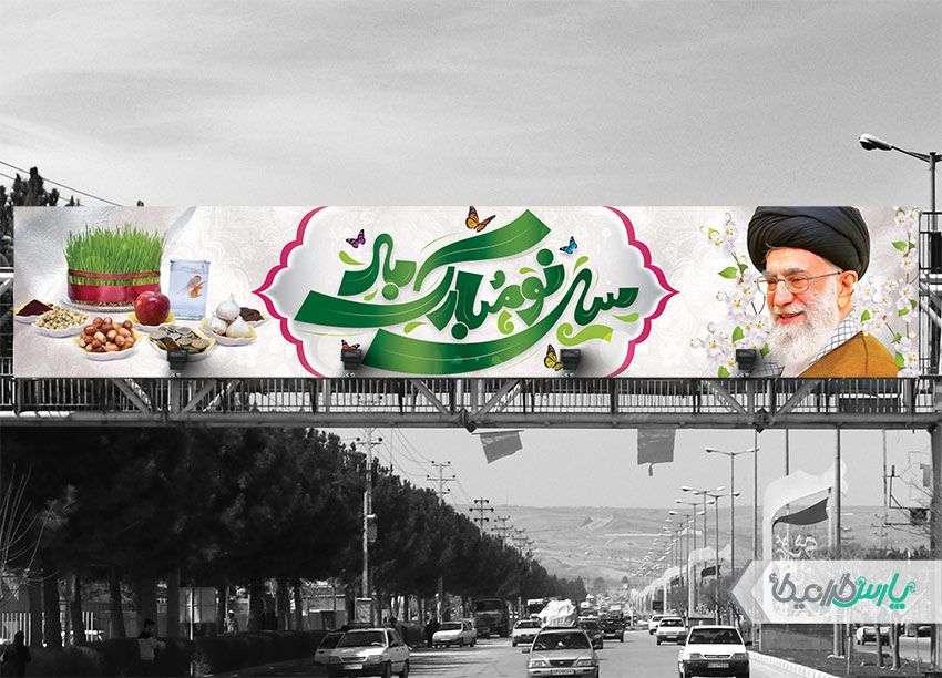 - طراحی بنر با استفاده از تصویر ایت الله خامنه ای ،شکوفه ، هفت سین در طرح بنر عید نوروز