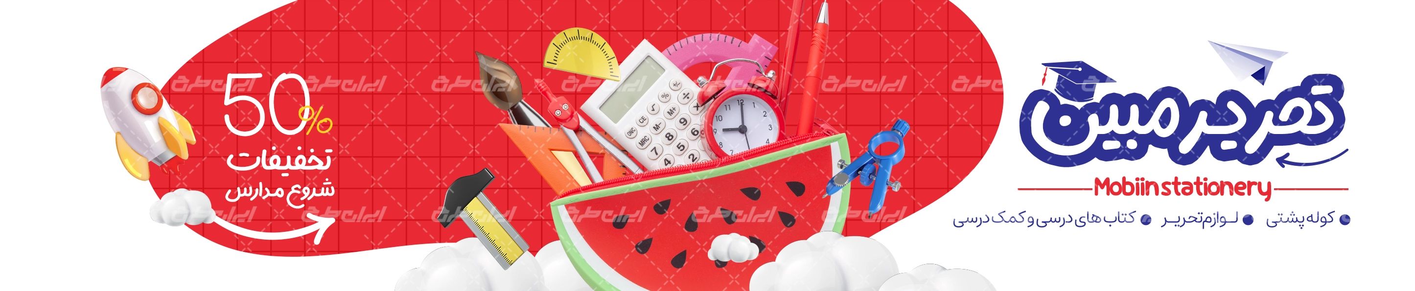 طرح بنر سایت لوازم تحریری، توسط تیم ایران طرح جهت تبلیغات و بازاریابی این دسته از فروشگاه ها طراحی شده است.