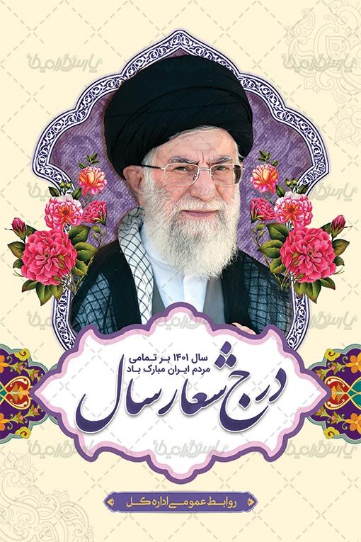 - طراحی بنر با استفاده از تصویر تصویر ایت الله خامنه ای در طرح بنر شعار سال