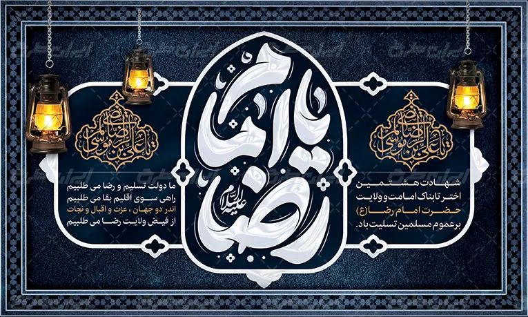 - استفاده از تایپوگرافی یا امام رضا در طرح بنر شهادت امام رضا (ع)