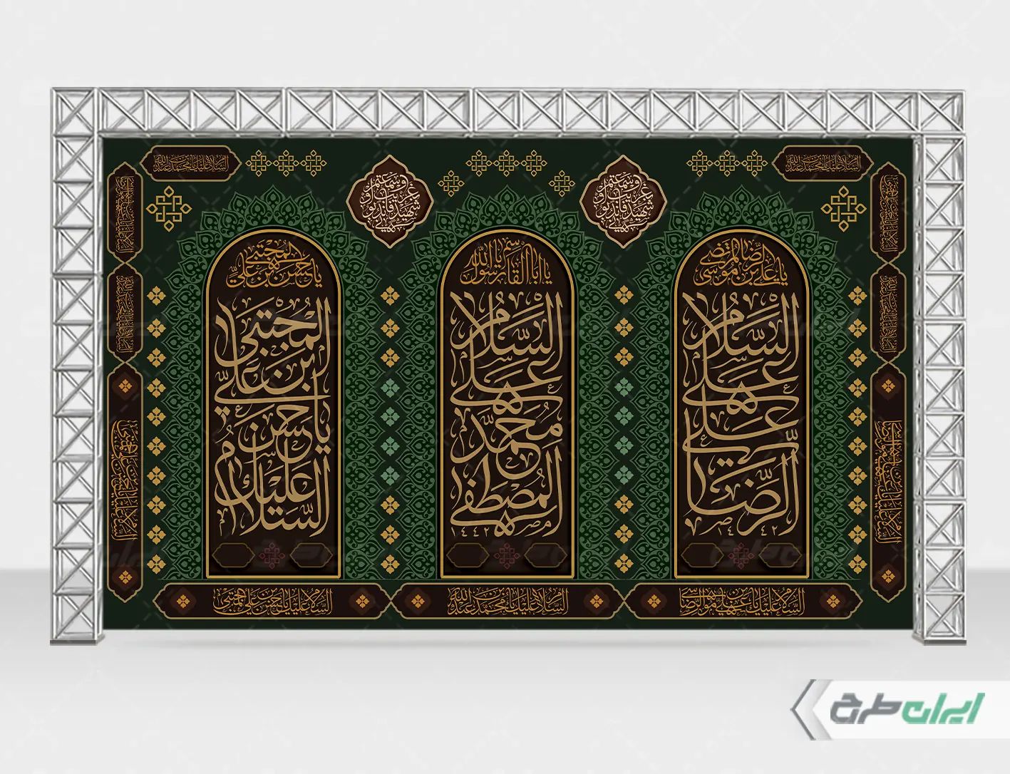 تذهیب، نقوش مذهبی و متن تسلیت رحلت پیامبر و شهادت امام حسن و امام رضا (ع) می باشد که توسط تیم ایران طرح طراحی شده است.