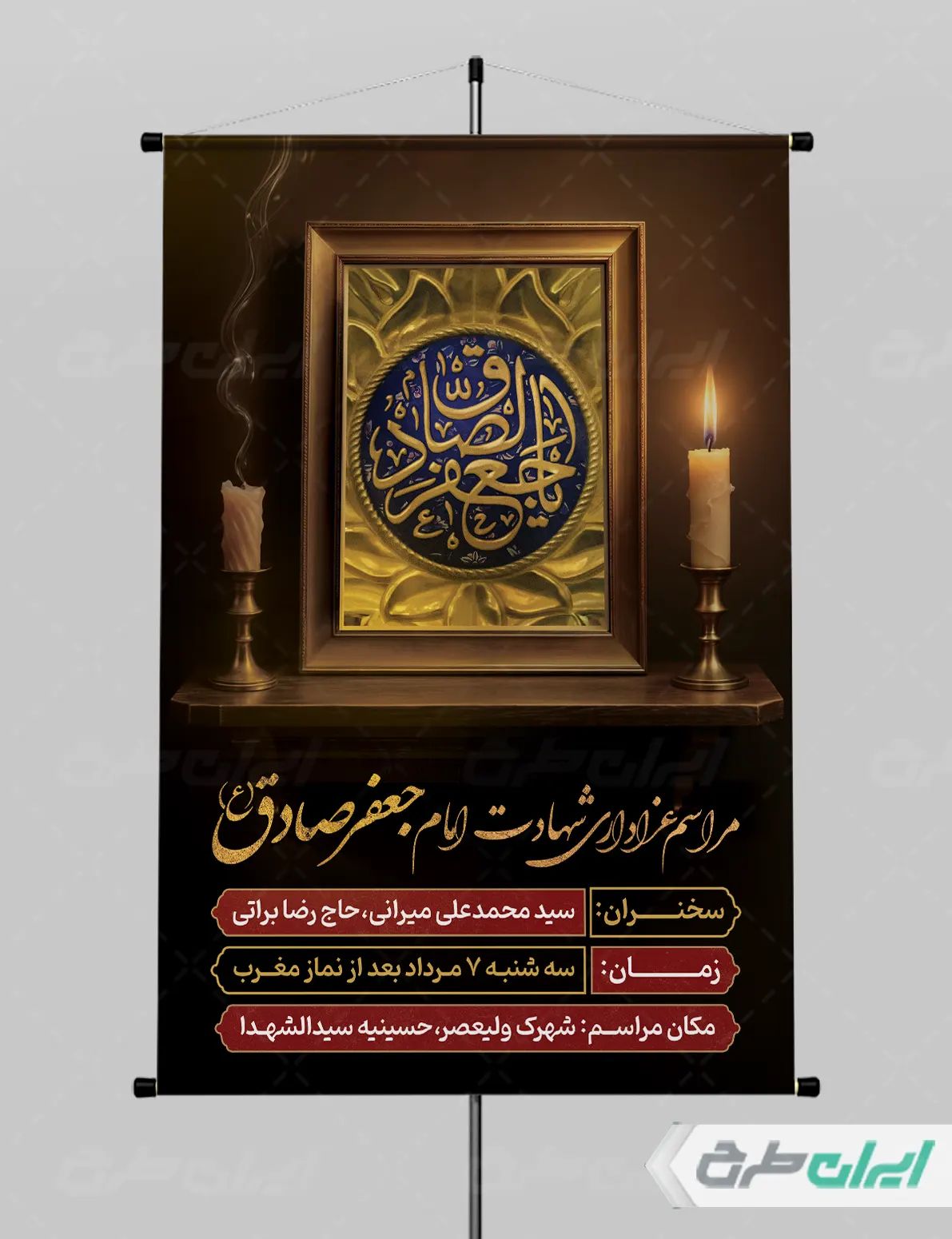 طرح بنر شهادت امام صادق (ع ) شامل: