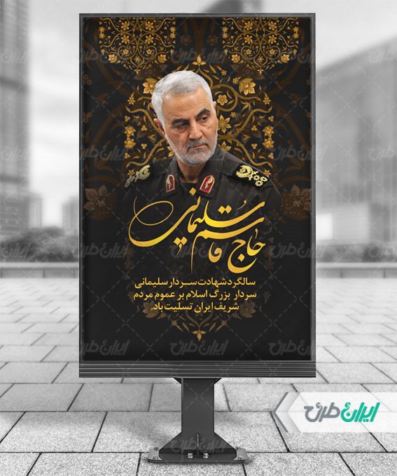 - طراحی بنر با استفاده از عکس با کیفیت شهید سردار سلیمانی در طرح بنر سالگرد شهادت سردار سلیمانی