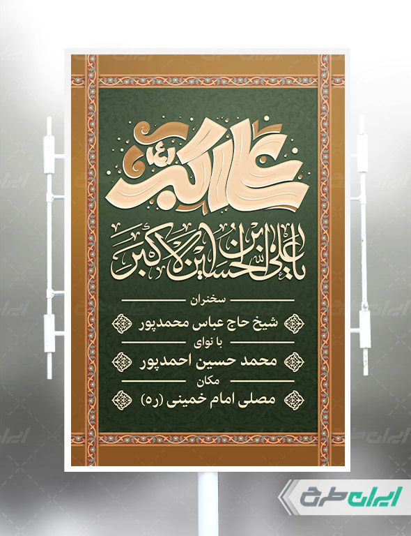 ۳. تایپوگرافی علی اکبر در این بنر، با استفاده از یک قلم مناسب و یک طرح جذاب، نام و صفت علی اکبر را به شکلی زیبا و چشمنواز نمایش میدهد. این تایپوگرافی، نه تنها اطلاعات لازم را ارائه میدهد، بلکه به تنهایی هم میتواند توجه مخاطبان را جلب کرده و آنها را به سمت هدف مورد نظر هدایت کند.