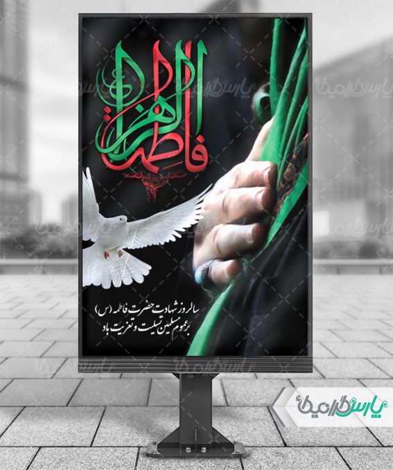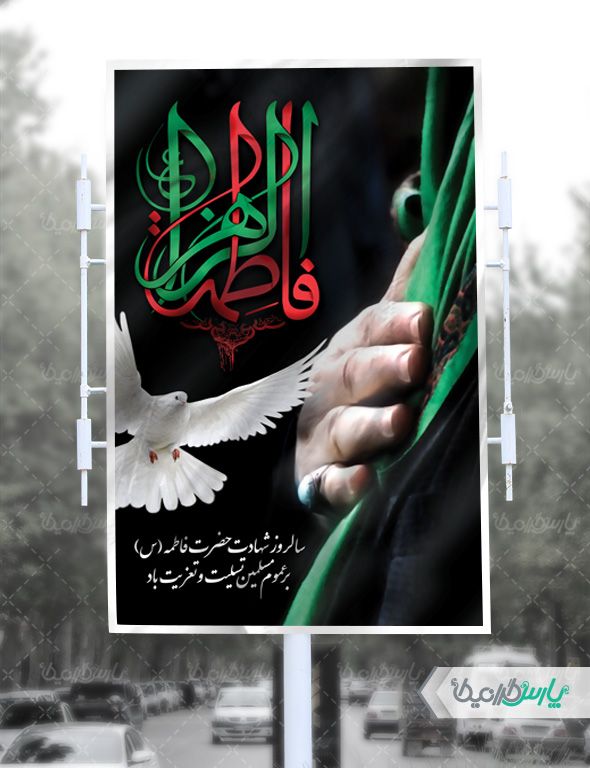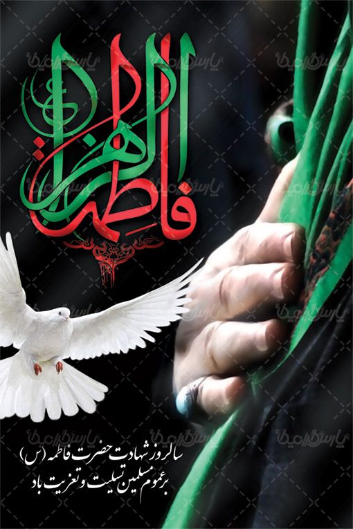 طرح بنر سالگرد شهادت حضرت فاطمه زهرا ، بنر سالگرد شهادت حضرت فاطمه زهرا، بنر لایه باز سالگرد شهادت حضرت فاطمه زهرا، بنر مناسبتی، تایپوگرافی فاطمه زهرا، عکس با کیفیت عزادار دهه فاطمیه، پرستو، متن تسلیت دهه فاطمیه