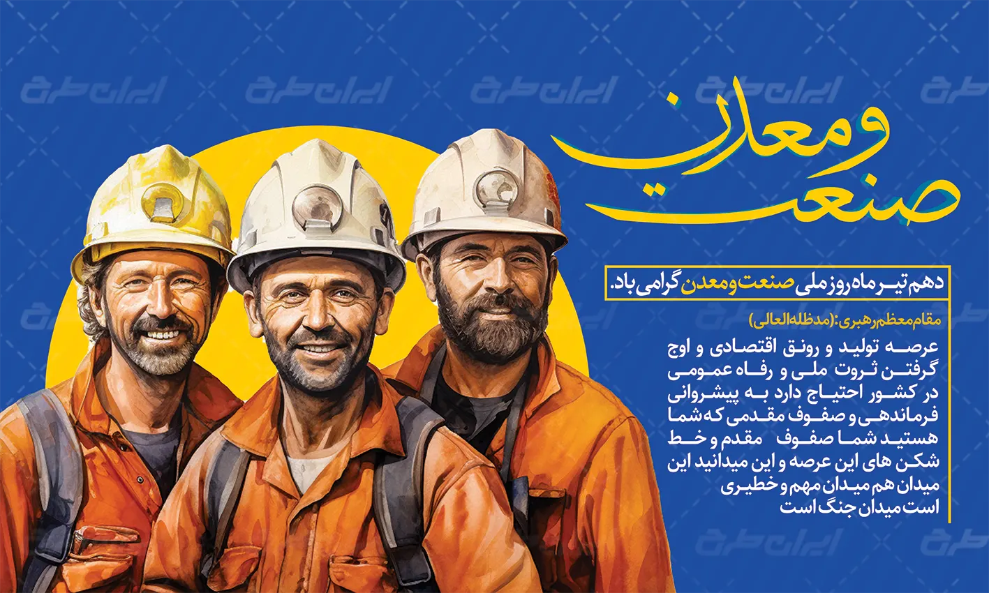 بنر روز صنعت و معدن، توسط تیم حرفه ای ایران طرح جهت استفاده کاربران سایت طراحی و به صورت لایه باز در دسترس کاربران قرار گرفته است.