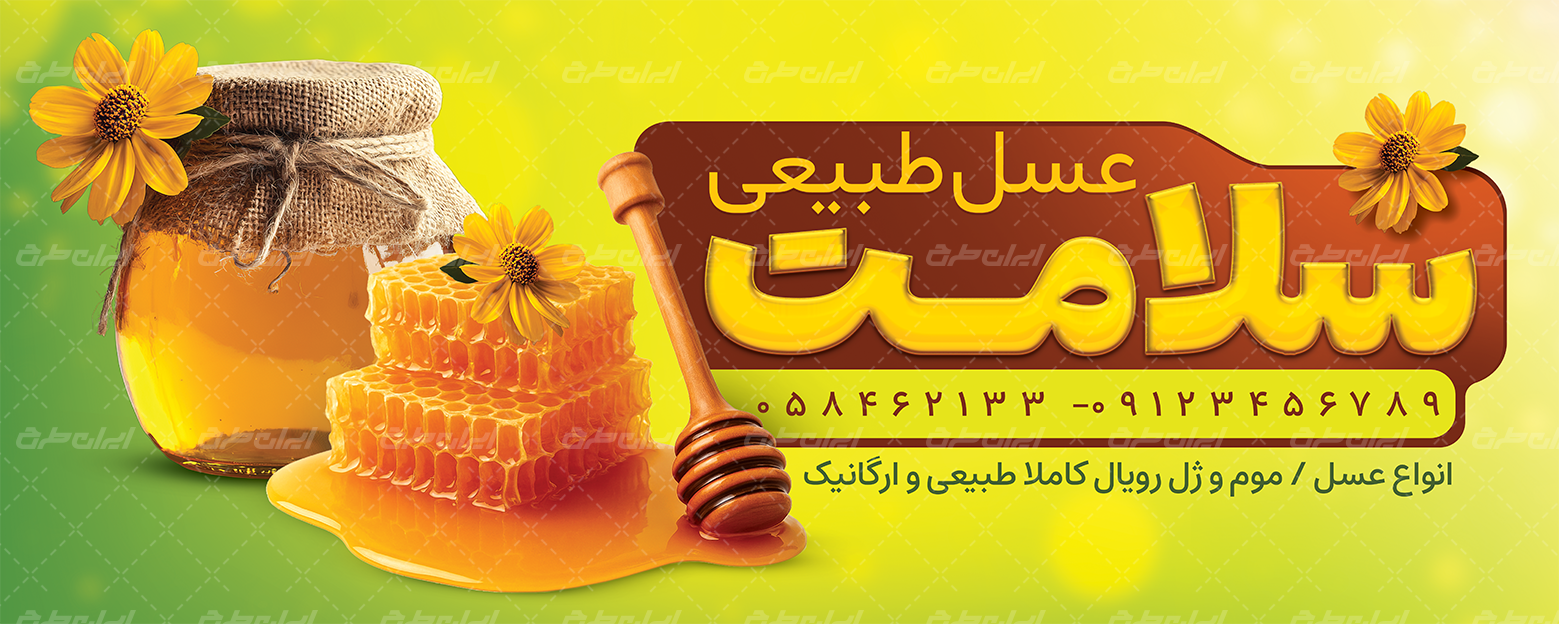 طرح بنر عسل فروشی، نمونه ای از بنر های مشاغل مختلف می باشد که جهت بازاریابی و تبلیغات این دسته از مغازه ها توسط تیم طراحان ایران طرح طراحی و در دسترس کاربران سایت قرار گرفته است.