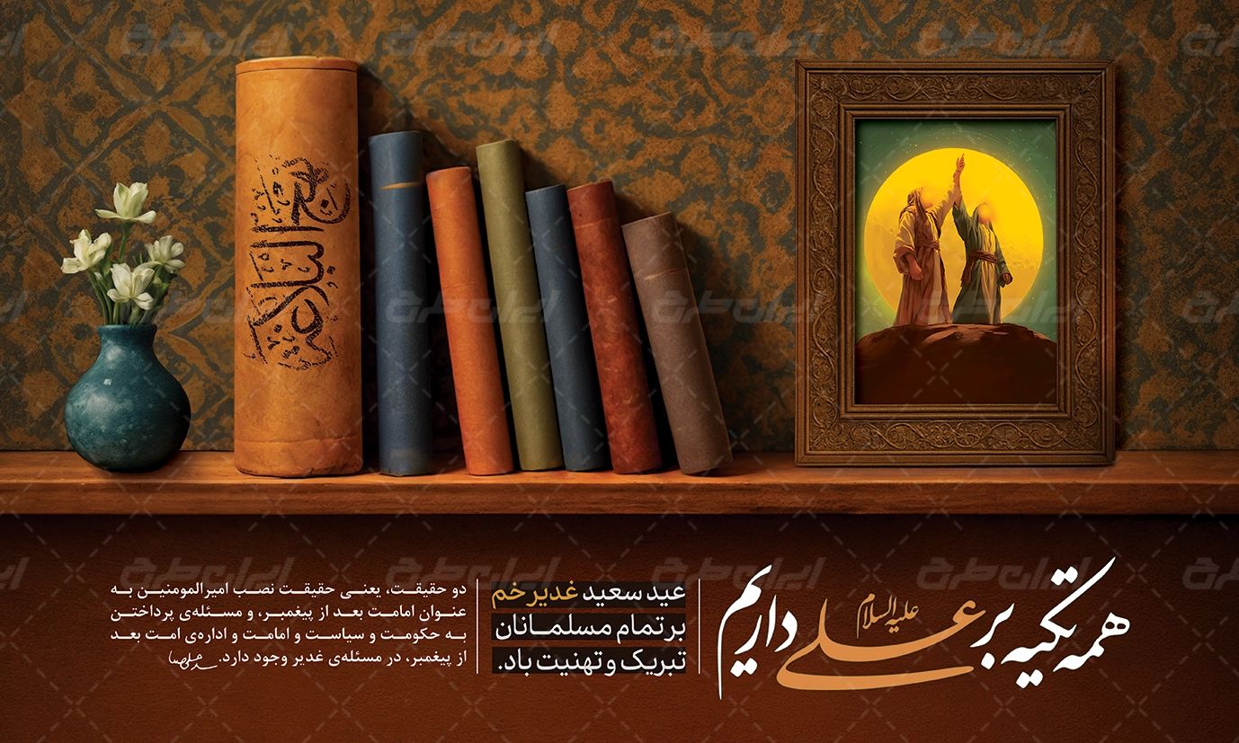 تصویر مناسب و متن تبریک عید غدیر خم می باشد که توسط طراحان ایران طرح در نرم افزار فتوشاپ طراحی شده است.