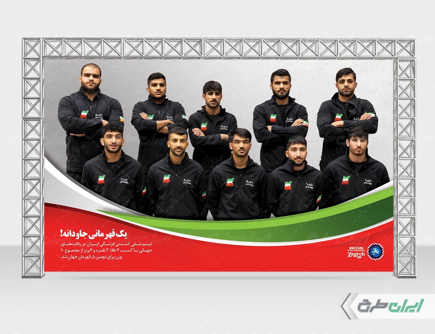 طرح بنر لایه باز تبریک قهرمانی کشتی، توسط تیم ایران طرح طراحی و در دسترس کاربران سایت قرار گرفته است.