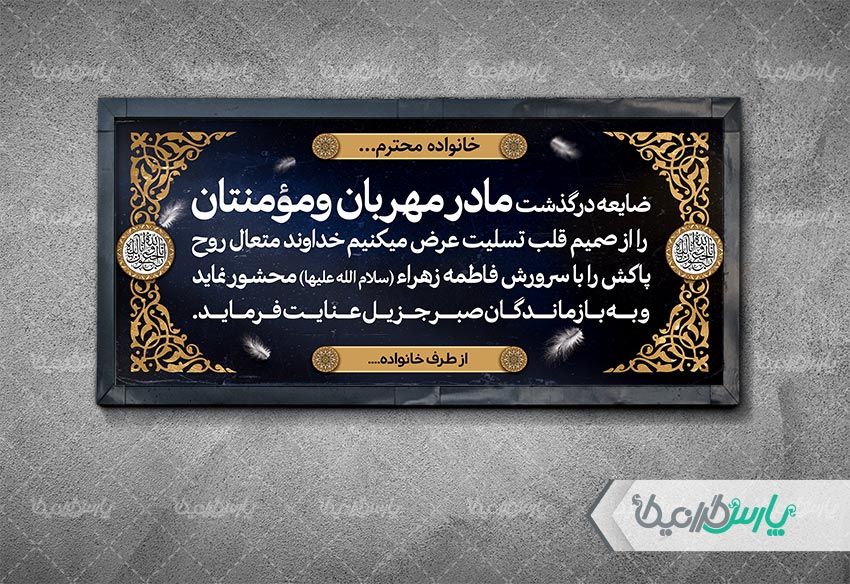 طرح بنر تسلیت، توسط تیم حرفه ای پارس گرافیک جهت استفاده کاربران سایت طراحی و به صورت لایه باز در دسترس کاربران قرار گرفته است.