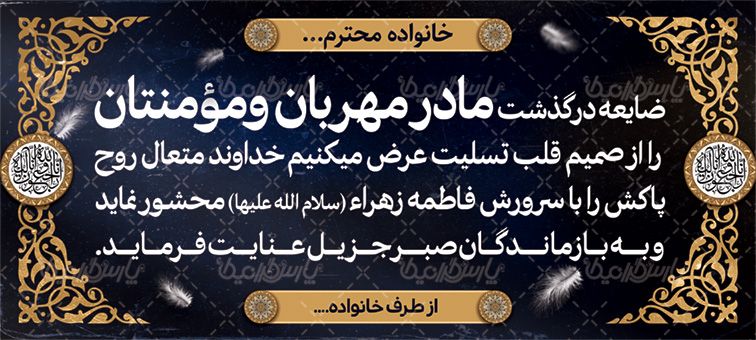 طرح آگهی ترحیم، آگهی ترحیم، اعلامیه ترحیم مادر، اطلاعیه ترحیم، متن ثلث انا لله و انا الیه راجعون، حاشیه تذهیب، پر، ابر، زمینه آسمان ، متن درگذشت مادر، بنر تسلیت، بنر اعلامیه ترحیم، طرح بنر آگهی ترحیم