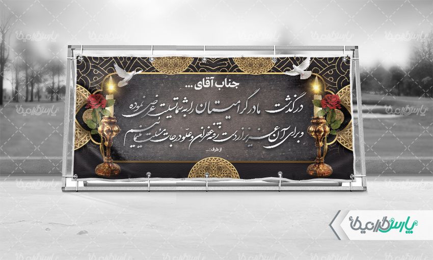 - استفاده از متن تسلیت و همدردی فوت مادر با صاحبان عزا در طرح بنر آگهی ترحیم