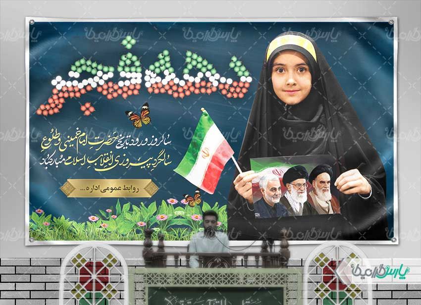 بنر دهه فجر، توسط تیم حرفه ای پارس گرافیک جهت استفاده کاربران سایت طراحی و به صورت لایه باز در دسترس کاربران قرار گرفته است.