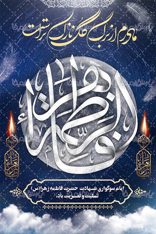 طرح بنر سالگرد شهادت حضرت فاطمه زهرا ، بنر سالگرد شهادت حضرت فاطمه زهرا، بنر لایه باز سالگرد شهادت حضرت فاطمه زهرا، بنر مناسبتی، تایپوگرافی فاطمه زهرا، عکس با کیفیت عزادار دهه فاطمیه، پرستو، متن تسلیت دهه فاطمیه