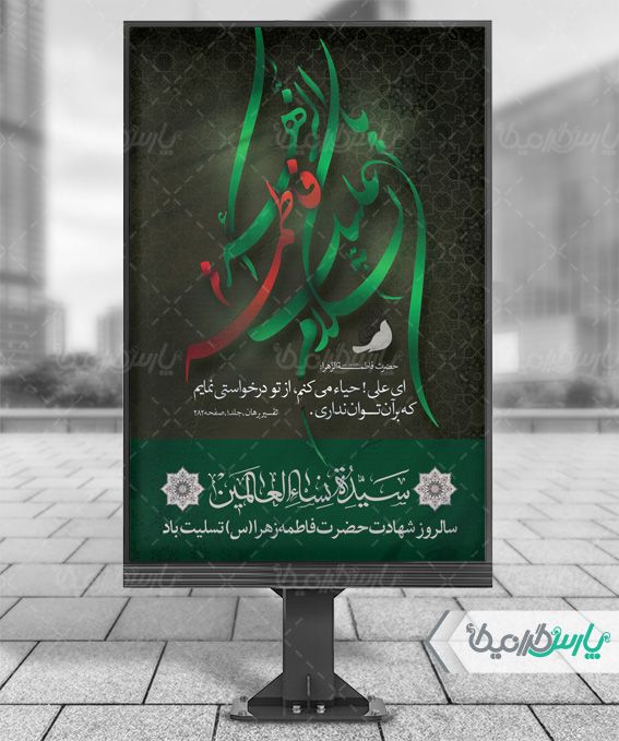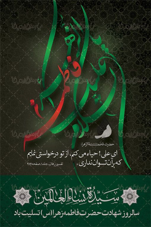 طرح بنر سالگرد شهادت حضرت فاطمه زهرا ، بنر سالگرد شهادت حضرت فاطمه زهرا، بنر لایه باز سالگرد شهادت حضرت فاطمه زهرا، بنر مناسبتی، تایپوگرافی فاطمه زهرا، عکس با کیفیت عزادار دهه فاطمیه، پرستو، متن تسلیت دهه فاطمیه