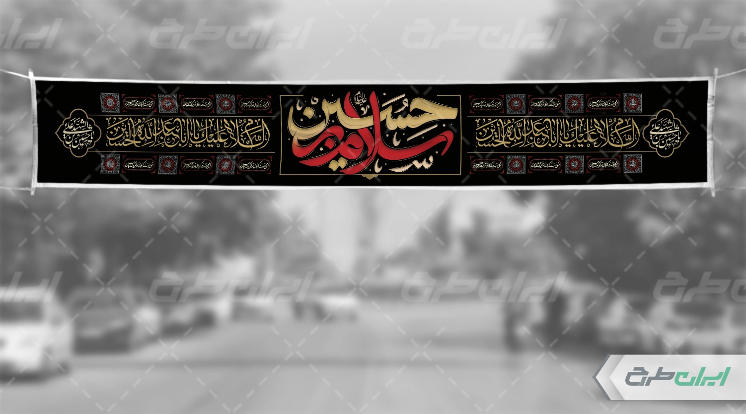 تذهیب و متن مرتبط با ایام سوگواری محرم می باشد که توسط طراحان ایران طرح در نرم افزار فتوشاپ طراحی شده است.