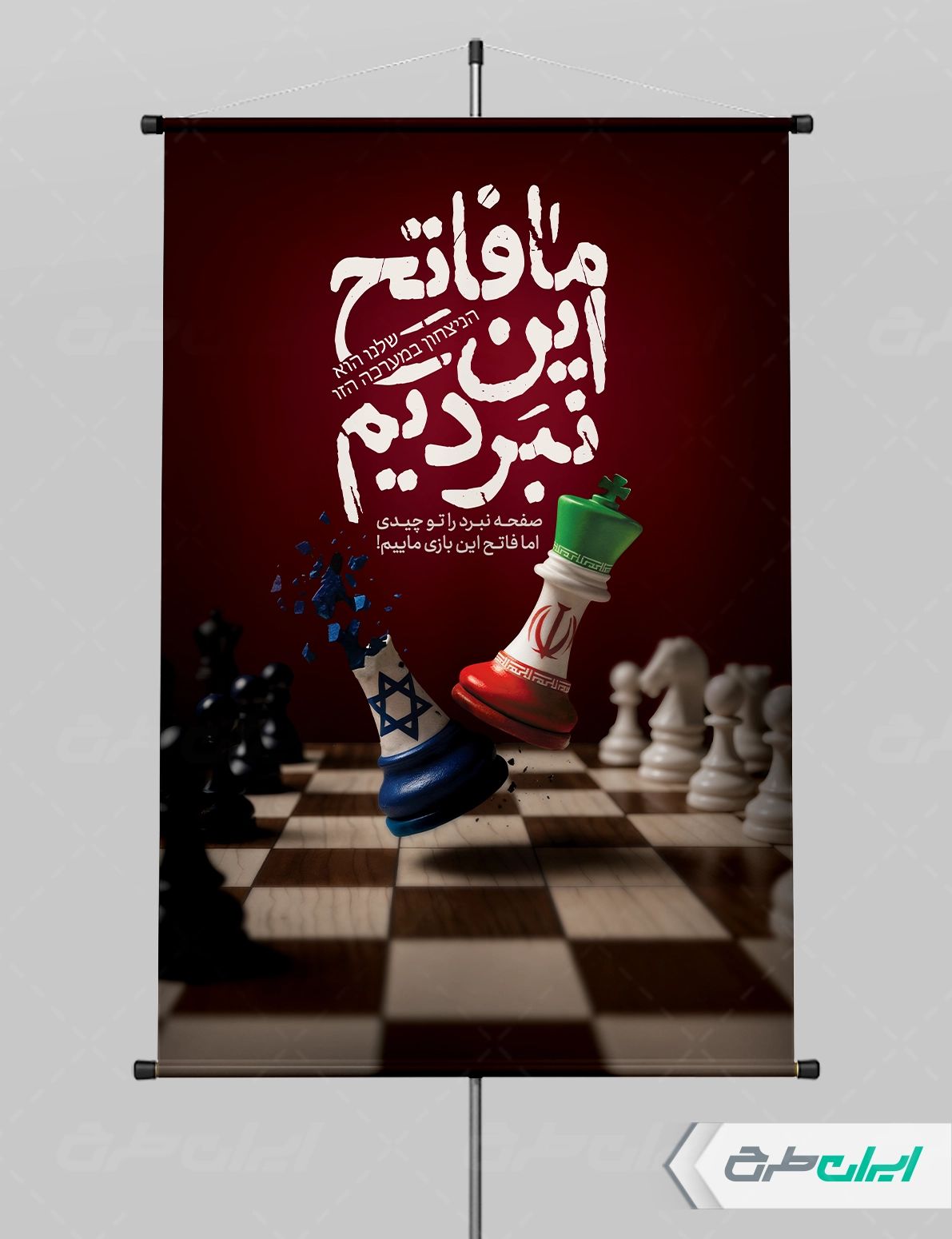 طرح مهره های شطرنج و متن مرتبط با عملیات وعده صادق 3 است که توسط تیم خلاق ایران طرح طراحی شده است.