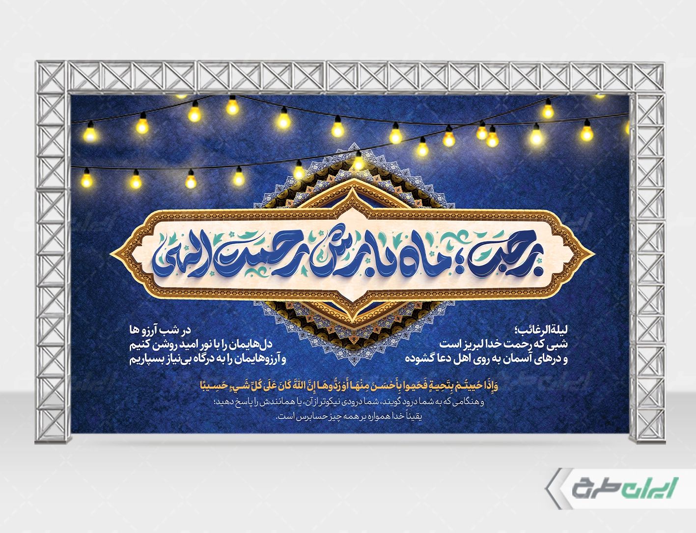 بنر ماه رجب، توسط تیم حرفه ای ایران طرح جهت استفاده کاربران سایت طراحی و به صورت لایه باز در دسترس کاربران قرار گرفته است.