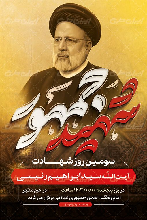 بنر تسلیت شهادت سید ابراهیم رئیسی، توسط تیم حرفه ای ایران طرح جهت استفاده کاربران سایت طراحی و به صورت لایه باز در دسترس کاربران قرار گرفته است.