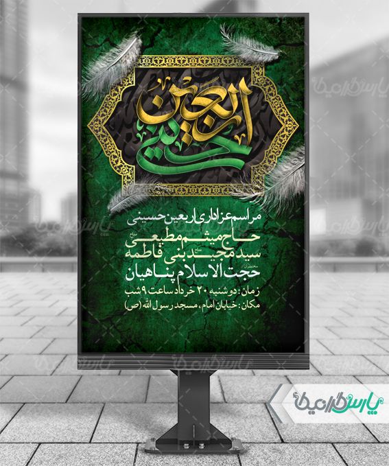 طرح بنراربعین حسینی شامل:تذهیب ، کادر اسلیمی ، نقوش مذهبی ، و متن مرتبط با عذاداری اربعین حسینی میباشد که توسط طراحان پارس گرافیک در نرم افزار فتوشاپ طراحی شده است. به دلیل لایه باز (قابل ویرایش توسط کاربران در نرم افزار فتوشاپ Adobe Photoshop) بودن و کیفیت بالای عناصر و المان های استفاده شده در طرح بنر مناسبتی ، می توانید علاوه بر چاپ بنر(به صورت عمودی)، در استوری اینستاگرام و سایر پلت فرم های فضای مجازی استفاده نمایید.