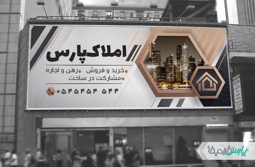 تیم پارس گرافیک طرح بنر مشاور املاک را برای استفاده روی سردر این دفاتر طراحی نموده است.