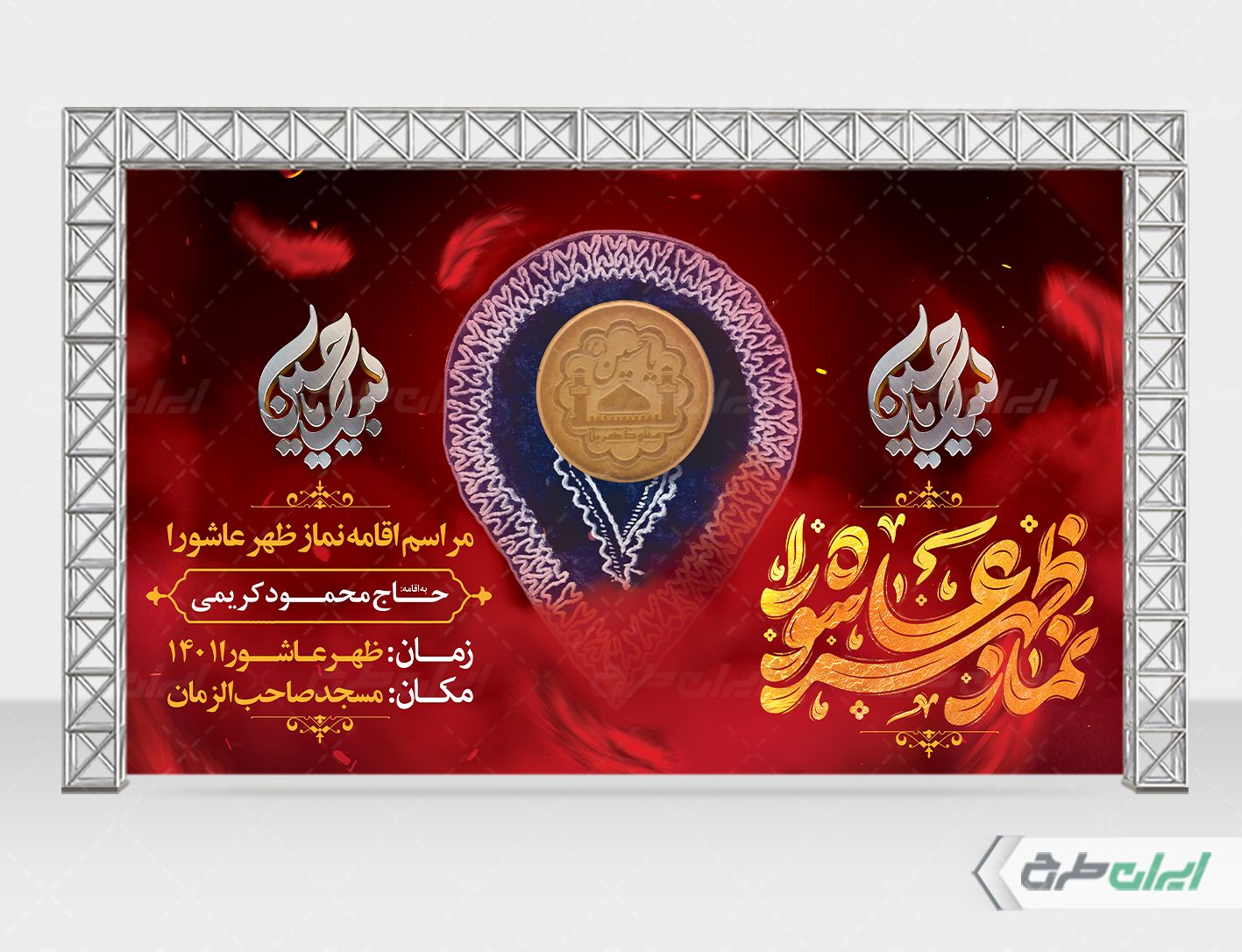 مشخصات فنی طرح بنر لایه باز اطلاع رسانی نماز ظهر عاشورا