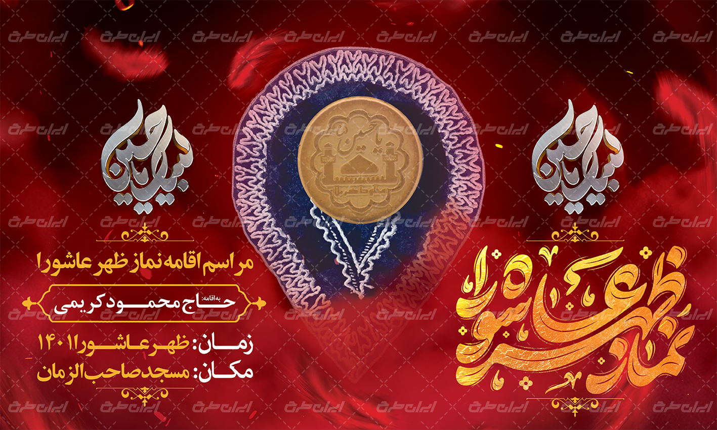 تایپوگرافی نماز ظهر عاشورا و متن مرتبط با مراسم نماز ظهر عاشورا می باشد که توسط طراحان ایران طرح در نرم افزار فتوشاپ طراحی شده است.