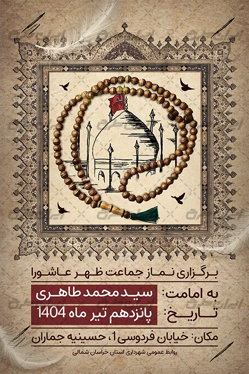 تذهیب و متن مرتبط با مراسم نماز ظهر عاشورا می باشد که توسط طراحان ایران طرح در نرم افزار فتوشاپ طراحی شده است.