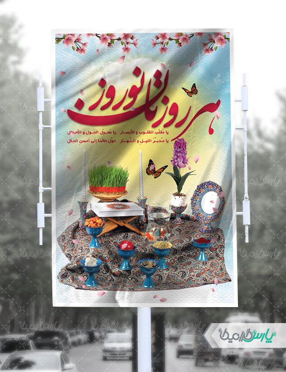 طرح بنر عید نوروز شامل: هفت سین ،گل ،پروانه و تایپوگرافی هر روزتان نوروز و متن دعای سال تحویل می باشد که توسط تیم پارس گرافیک طراحی شده است. به دلیل استفاده از عناصر و المان های با کیفیت در طرح بنر مناسبتی ، می توانید علاوه بر چاپ بنر (به صورت افقی)، در استوری اینستاگرام و یا دیگر پلت فرم های فضای مجازی استفاده نمایید. ضمنا به دلیل لایه باز بود طرح بنر عید نوروز را می توانید با استفاده از نرم افزار فتوشاپ تغییرات دلخواه خود را اعمال کنید.