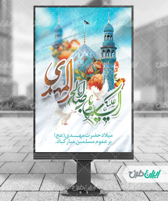 طرح بنر ولادت امام مهدی (عج) شامل:عکس با کیفیت جمکران ، طرح گل و متن تبریک آغاز امامت امام زمان می باشد که توسط تیم پارس گرافیک طراحی شده است. به دلیل استفاده از عناصر و المان های با کیفیت در طرح بنر مناسبتی ، می توانید علاوه بر چاپ بنر (به صورت عمودی)، در استوری اینستاگرام و یا دیگر پلت فرم های فضای مجازی استفاده نمایید. ضمنا به دلیل لایه باز بود طرح بنر آغاز امامت حضرت مهدی می توانید با استفاده از نرم افزار فتوشاپ طرح را ویرایش نمایید.