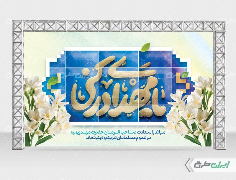طرح بنر ولادت امام مهدی (عج) شامل:طرح گل ، تایپوگرافی یا مهدی ادرکنی و متن تبریک ولادت امام مهدی می باشد که توسط تیم ایران طرح طراحی شده است. به دلیل استفاده از عناصر و المان های با کیفیت در طرح بنر مناسبتی ، می توانید علاوه بر چاپ بنر (به صورت عمودی)، در استوری اینستاگرام و یا دیگر پلت فرم های فضای مجازی استفاده نمایید. ضمنا به دلیل لایه باز بود طرح بنر آغاز امامت حضرت مهدی می توانید با استفاده از نرم افزار فتوشاپ طرح را ویرایش نمایید.