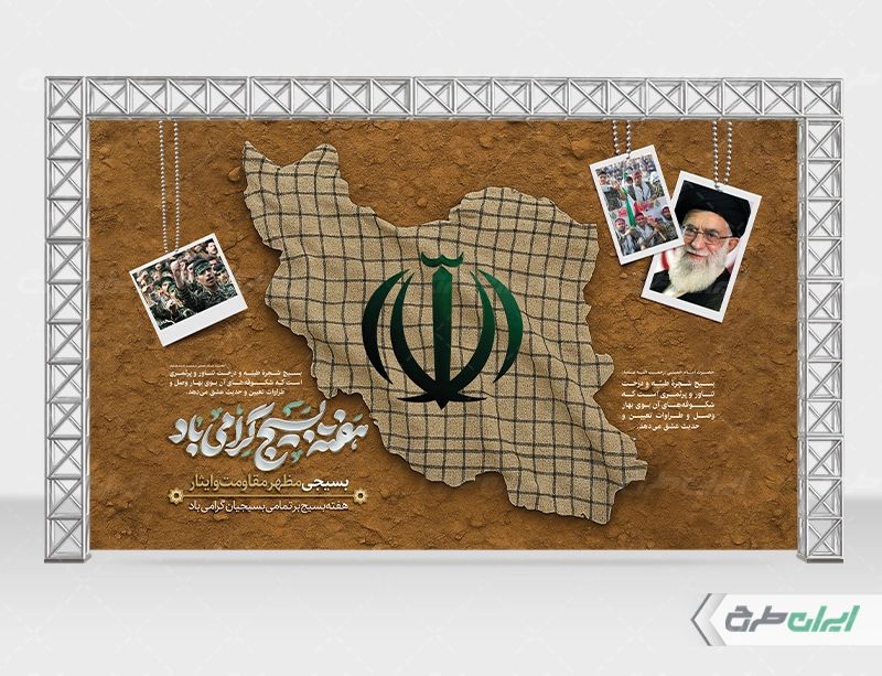 بنر لایه باز هفته بسیج، توسط تیم حرفه ای ایران طرح جهت استفاده کاربران سایت طراحی و به صورت لایه باز در دسترس کاربران قرار گرفته است.