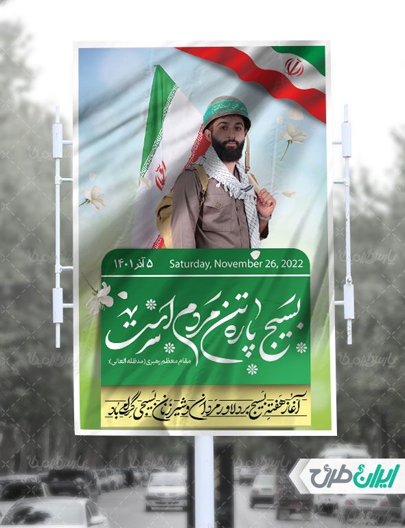 طرح بنر هفته بسیج شامل:پرچم ایران ،تصویر بسیجی و متن گرامیداشت هفته بسیج می باشد که توسط تیم پارس گرافیک طراحی شده است. به دلیل استفاده از عناصر و المان های با کیفیت در طرح بنر مناسبتی هفته بسیج، می توانید علاوه بر چاپ بنر (به صورت افقی)، در استوری اینستاگرام و یا دیگر پلت فرم های فضای مجازی استفاده نمایید. ضمنا به دلیل لایه باز بود طرح بنر هفته بسیج می توانید با استفاده از نرم افزار فتوشاپ تغییرات دلخواه خود را اعمال کنید.