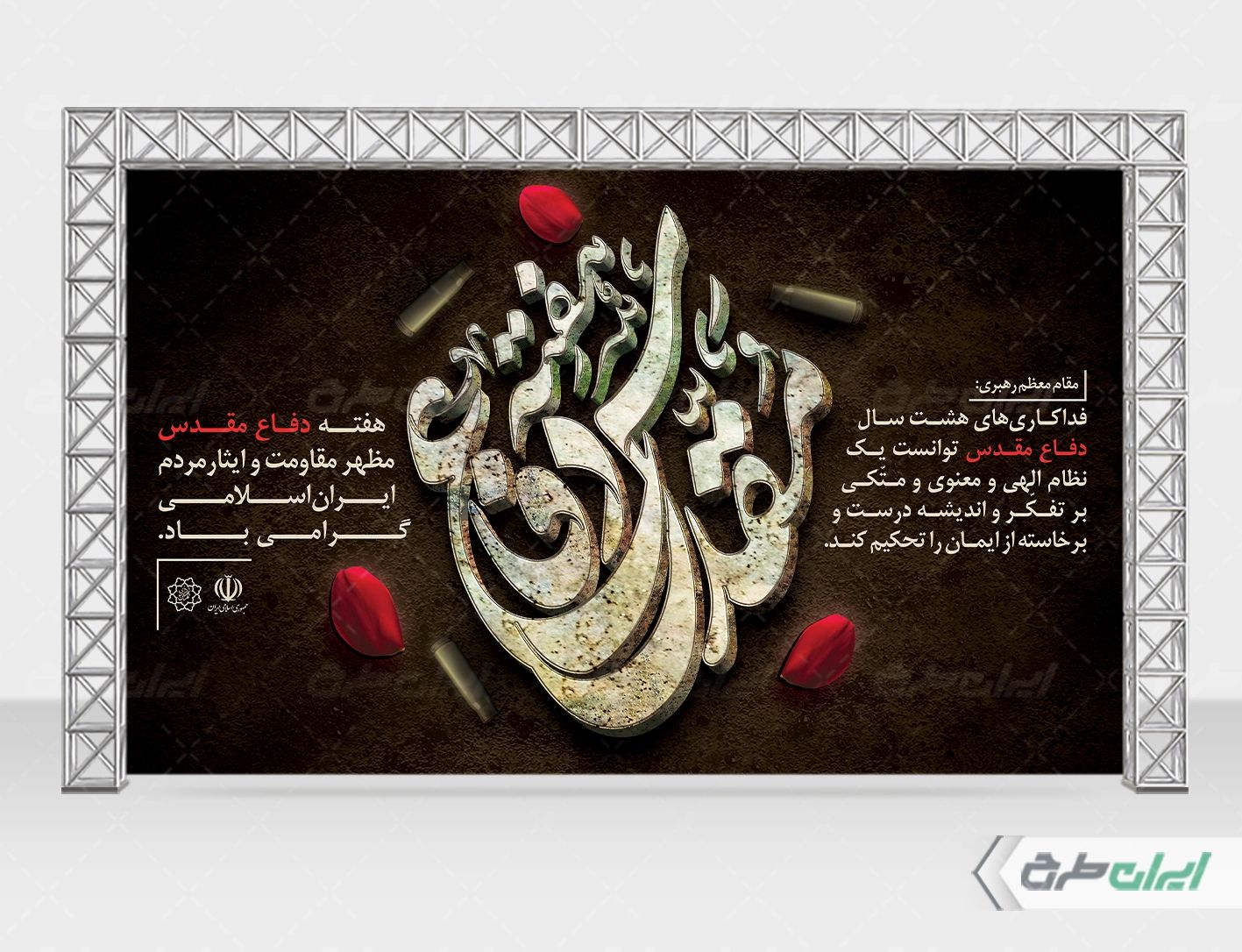 بنر لایه باز هفته دفاع مقدس، توسط تیم حرفه ای ایران طرح جهت استفاده کاربران سایت طراحی و به صورت لایه باز در دسترس کاربران قرار گرفته است.