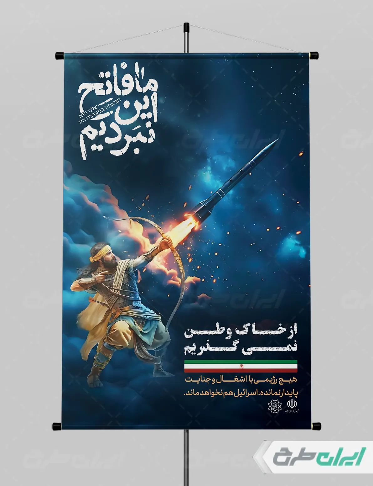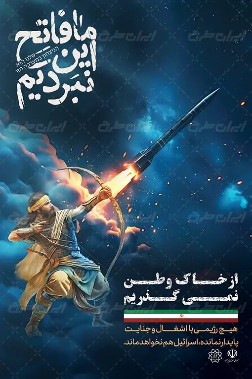 تصویر پرچم ایران و متن مرتبط با این حمله موشکی است که توسط تیم خلاق ایران طرح طراحی شده است.